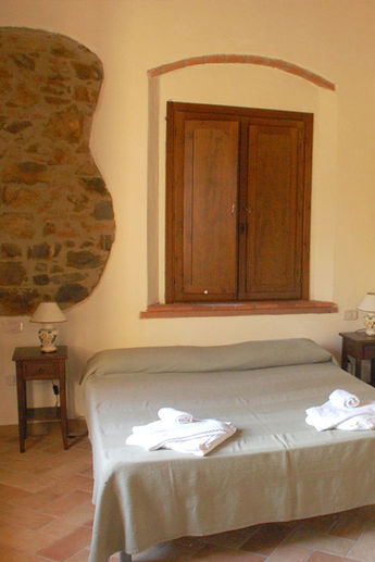 Im zweiten Stock umfasst dieses Apartment für 2 Personen eine Küche mit Essbereich, ein Doppelzimmer und ein Badezimmer mit Dusche. Hohe Decken sind mit großen Deckenventilatoren ausgestattet. Schöne Ausblicke auf unsere Olivenhaine und Giuncarico, ein malerisches Dorf auf einem Hügel.